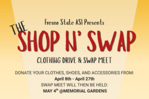 Clothing drive and swap meet! Donate your clothes, shoes, and accessories from April 8th to April 27th. A swap meet will then take place on May 4th at the Memorial Gardens. All drop off locations will be open 24/7 until the cut off date.
