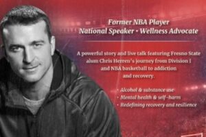 Join Fresno State ASI, the Student Health and Counseling Center, and Fresno State Get Involved to listen to national speaker, wellness advocate, and former NBA player Chris Herren for a powerful story and live talk featuring the former Fresno State alumnus. Herren’s story will share his journey from Division I and NBA basketball to addiction and recovery.